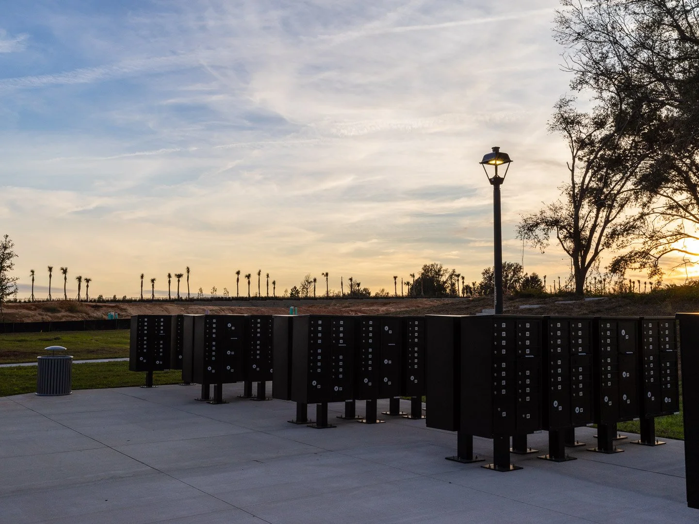New builds rising in the damp. Rainwood. Unfinished. The air smells like freshly paved asphalt and badly cut 2x4s.