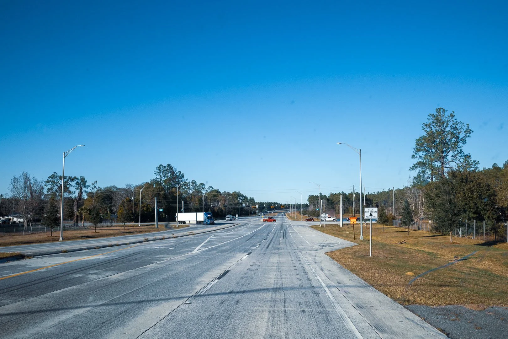 On the road again. Fire danger: moderate today. Cutting through Lake Alfred.